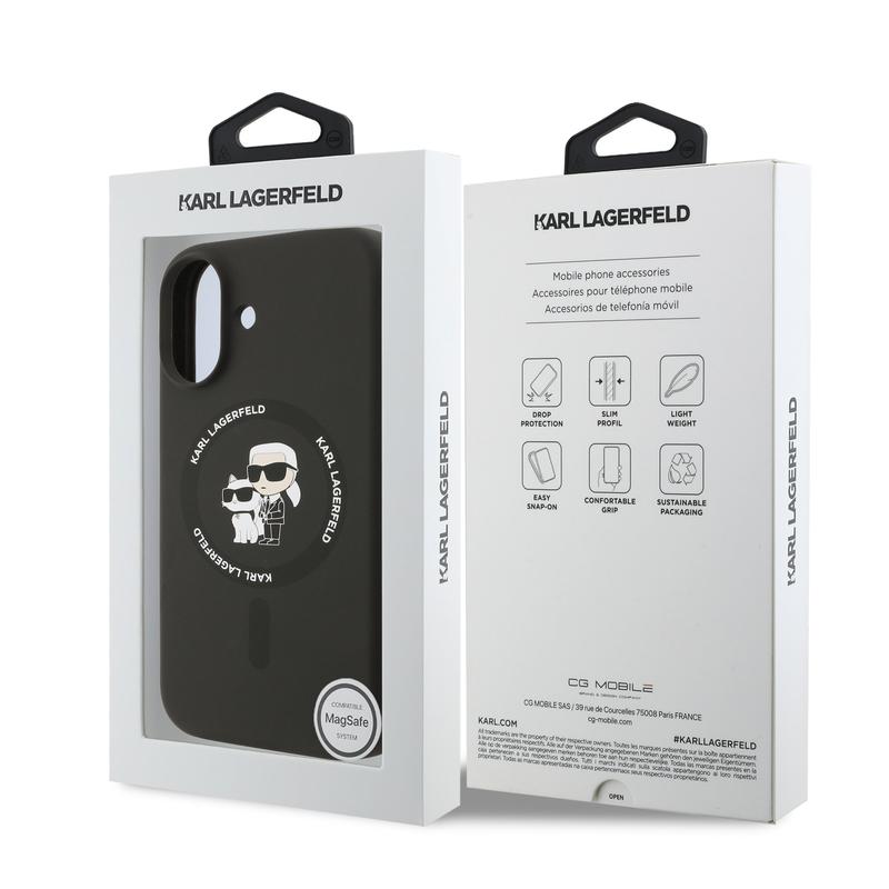Husă MagSafe din silicon lichid Karl Lagerfeld Karl and Choupette pentru iPhone 17