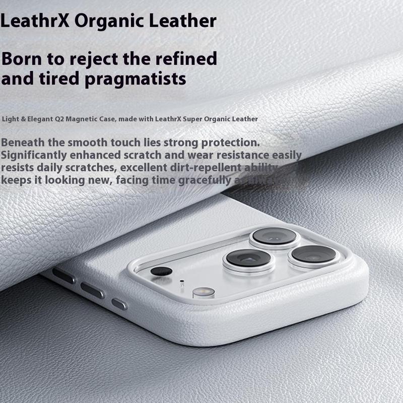 Protejați-vă telefonul în stil premium cu carcasa BENKS Q2 MagSafe pentru iPhone 17 Pro Max. Realizată de experți dintr-un exterior din piele microfibră, un cadru rigid din PC și un interior din silicon moale, aceasta oferă o senzație de lux, oferind în același timp protecție completă. Matricea magnetică inovatoare N52 cu pământuri rare îmbunătățește compatibilitatea MagSafe, asigurând o conexiune puternică și fiabilă pentru încărcătoare și accesorii. Concepută pentru a rezista amprentelor și transpirației, această husă rămâne curată și elegantă prin utilizarea zilnică. Cu profilul său subțire, potrivirea precisă și textura de prindere îmbunătățită, BENKS Q2 echilibrează perfect sofisticarea, confortul și durabilitatea.
