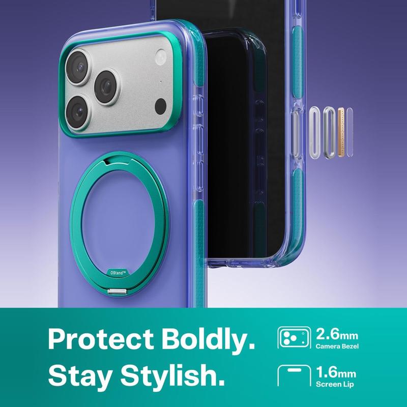 Husa Torras O3 Hue este, de asemenea, construită cu margini de protecție ridicate pentru a ajuta la reducerea contactului direct cu suprafețele plane. Marginea ridicată de 2,5 mm pentru cameră și marginile ridicate de 1,5 mm pentru ecran oferă o separare suplimentară în jurul celor mai expuse zone ale iPhone 17 Pro Max. Cu materiale de amortizare a șocurilor întărite, compatibilitate MagSafe și o funcție practică de suport, această husă este o alegere excelentă pentru utilizatorii care doresc atât protecție, cât și confort într-un singur design.
