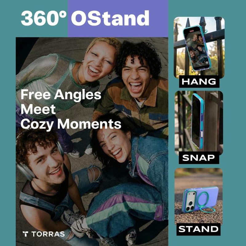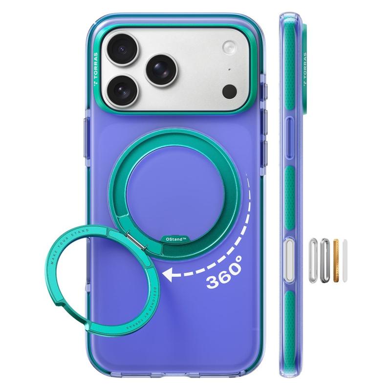 Husă MagSafe Torras O3 Hue pentru iPhone 17 Pro - Husă de protecție din PC/TPU cu suport magnetic rotativ la 360°