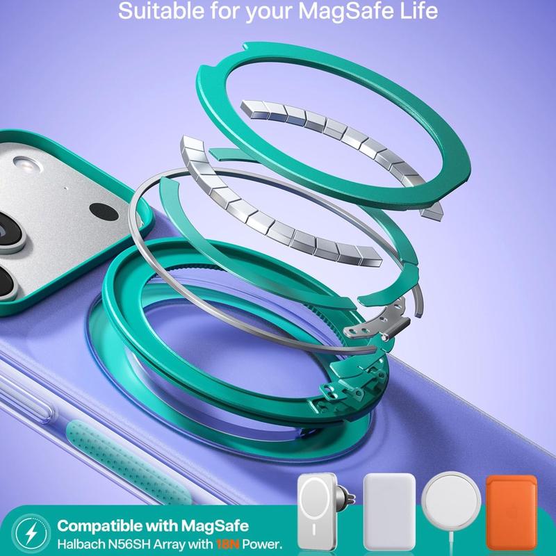 O caracteristică cheie a acestei huse este compatibilitatea sa magnetică puternică. Construită cu o matrice de magneți Halbach N56SH și o forță de atracție specificată de 18N, este concepută pentru alinierea sigură cu accesorii și încărcătoare magnetice compatibile. Suportul magnetic integrat 360° adaugă un plus de confort, permițându-ți să poziționezi iPhone-ul 17 Pro pentru vizionare hands-free în timpul apelurilor video, streamingului, cititului sau multitasking-ului de zi cu zi.