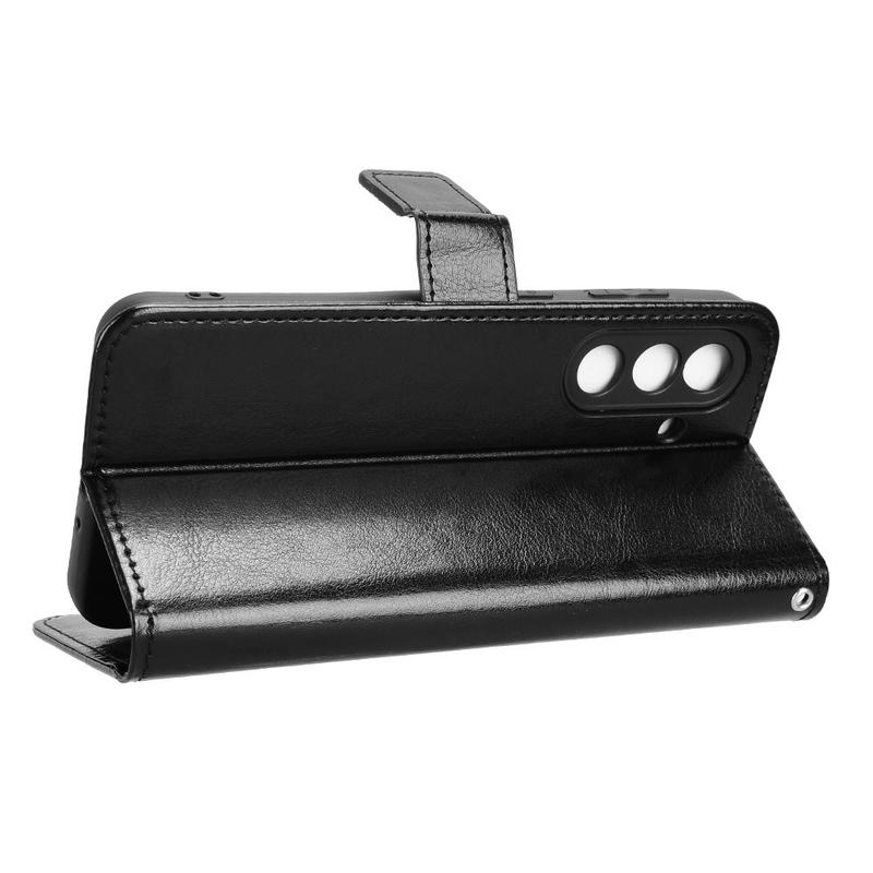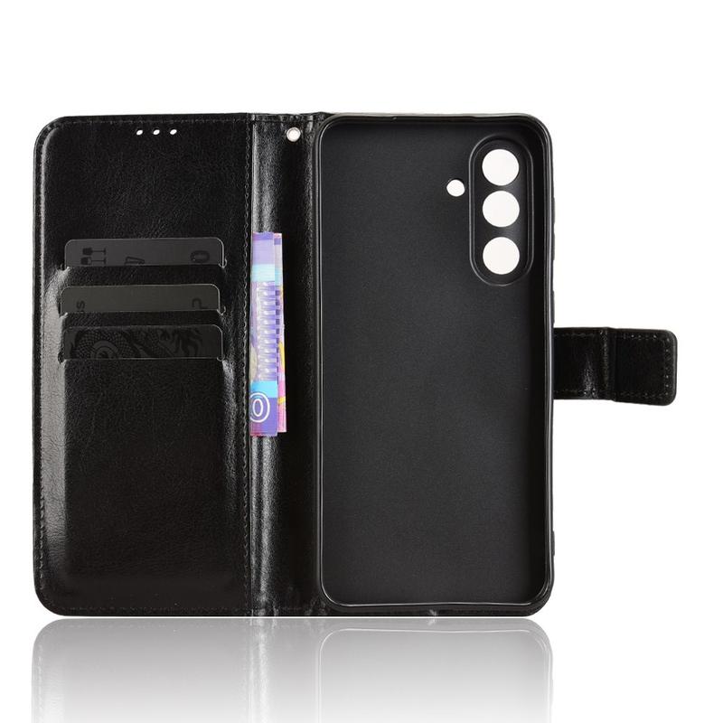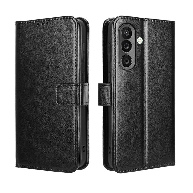 Oferiți noului dvs. Samsung Galaxy M56 un aspect rafinat, de epocă, în timp ce vă înlocuiți portofelul de zi cu zi. Exteriorul din poliuretan cu textură Crazy Horse se împerechează cu o carcasă TPU care absoarbe șocurile pentru a proteja împotriva căderilor și zgârieturilor, în timp ce buzunarele inteligente păstrează cardurile și banii organizați.