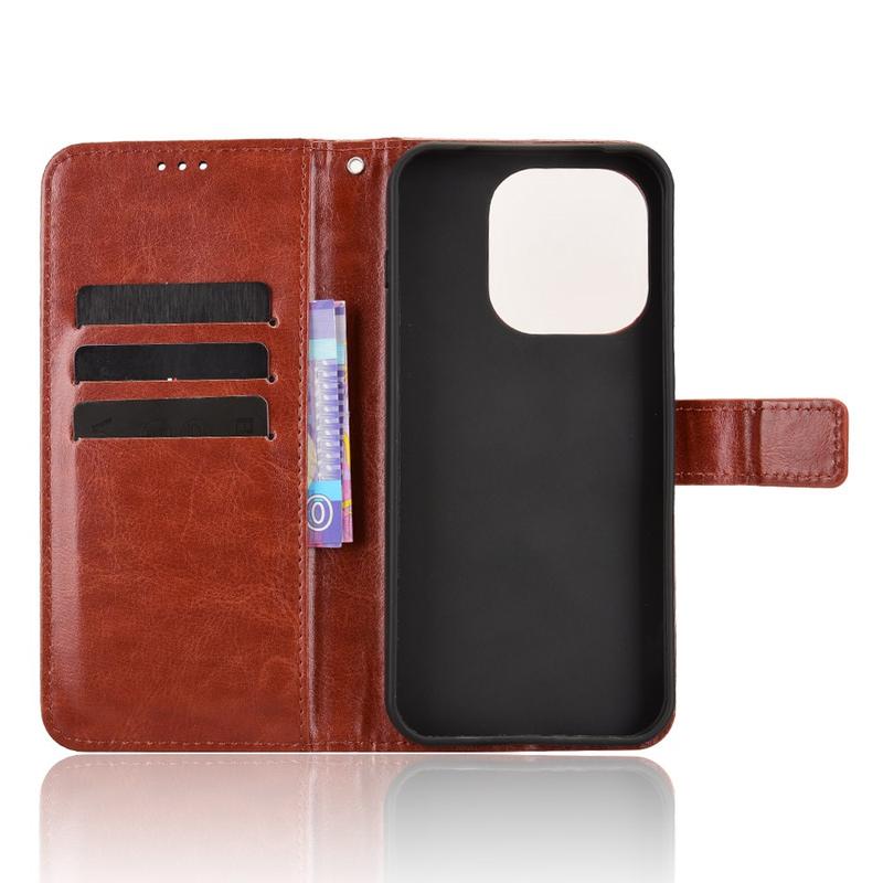 Numele "Crazy Horse" provine de la șelăria ecvestră tradițională; suprafața texturată este tratată cu ceară care creează un efect în două tonuri, tras în sus, imitând pielea integrală, dar rămânând prietenoasă cu animalele, mai ușoară și mai rezistentă la zgârieturi. Acest lucru o face ideală pentru accesoriile telefonice utilizate zilnic, unde contează atât durabilitatea, cât și stilul.