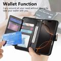 - Portofel all-in-one: Multiple sloturi pentru carduri și un buzunar pentru bancnote pe toată lungimea vă permit să depozitați cu ușurință bani, carduri de credit și acte de identitate.