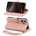 Husă portofel cu model floral și frunze, buzunar cu fermoar și curea de mână pentru iPhone 17