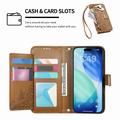 Husă portofel cu model floral și frunze, buzunar cu fermoar și curea de mână pentru iPhone Air