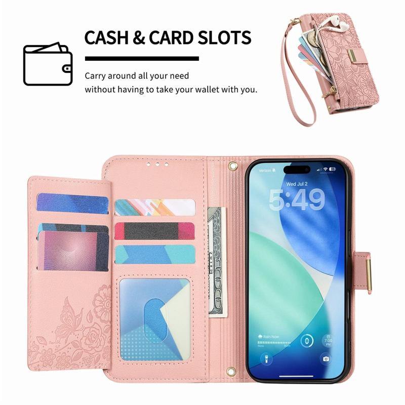 Spre deosebire de carcasele obișnuite pentru iPhone Air, această husă portofel all-in-one combină protecția, organizarea și eleganța. Imprimeul floral îi conferă un aspect elegant, în timp ce buzunarul cu fermoar și cureaua de încheietură asigură un confort de neegalat pentru viața de zi cu zi și pentru călătorii.