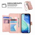 Husă portofel cu model floral și frunze, buzunar cu fermoar și curea de mână pentru iPhone Air