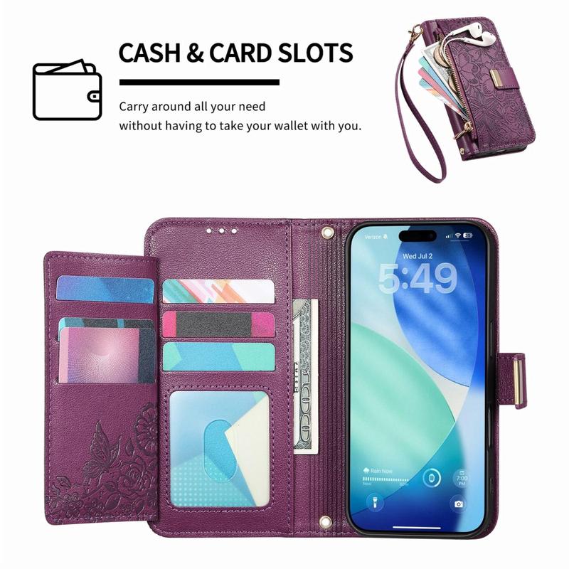 Spre deosebire de carcasele obișnuite pentru iPhone Air, această husă portofel all-in-one combină protecția, organizarea și eleganța. Imprimeul floral îi conferă un aspect elegant, în timp ce buzunarul cu fermoar și cureaua de încheietură asigură un confort de neegalat pentru viața de zi cu zi și pentru călătorii.