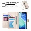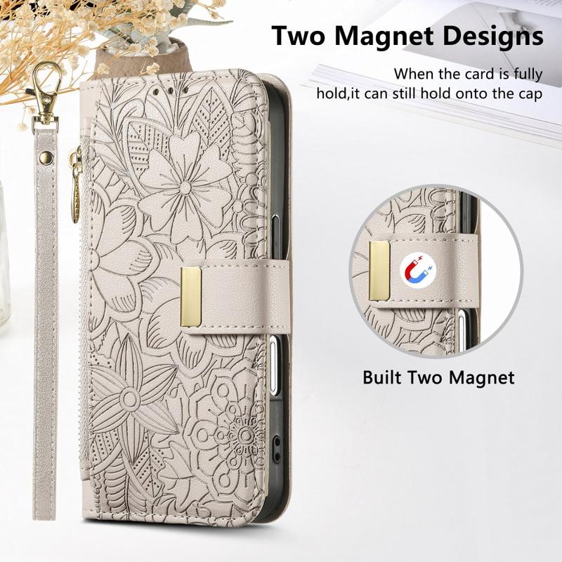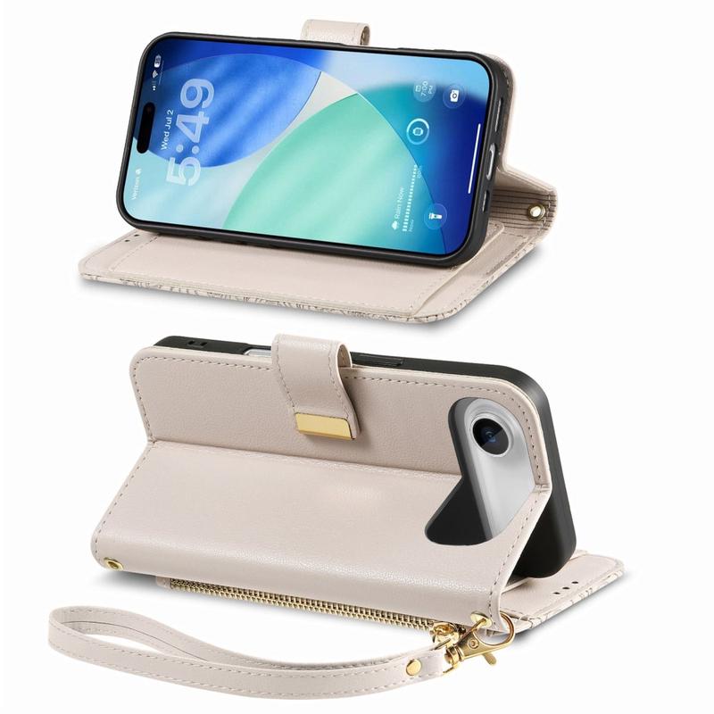 Husă portofel cu model floral și frunze, buzunar cu fermoar și curea de mână pentru iPhone Air