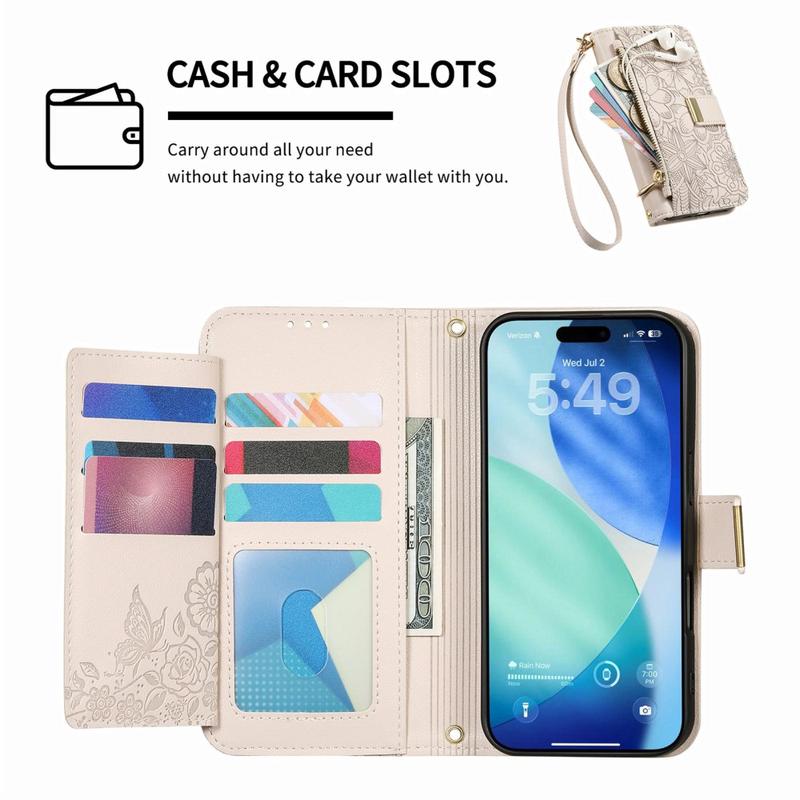 Spre deosebire de carcasele obișnuite pentru iPhone Air, această husă portofel all-in-one combină protecția, organizarea și eleganța. Imprimeul floral îi conferă un aspect elegant, în timp ce buzunarul cu fermoar și cureaua de încheietură asigură un confort de neegalat pentru viața de zi cu zi și pentru călătorii.