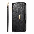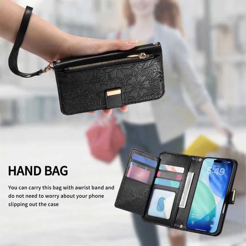 Husă portofel cu model floral și frunze, buzunar cu fermoar și curea de mână pentru iPhone 17 Pro Max