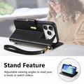 Spre deosebire de carcasele obișnuite pentru iPhone 17 Pro Max, această husă portofel all-in-one combină protecția, organizarea și eleganța. Imprimeul floral îi conferă un aspect elegant, în timp ce buzunarul cu fermoar și cureaua de încheietură asigură un confort de neegalat pentru viața de zi cu zi și pentru călătorii.