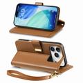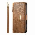 Husă portofel cu model floral și frunze, buzunar cu fermoar și curea de mână pentru iPhone 17 Pro Max