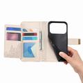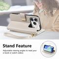 Husă portofel cu model floral și frunze, buzunar cu fermoar și curea de mână pentru iPhone 17 Pro Max
