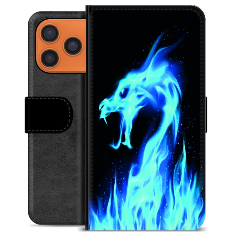 Husă Portofel Premium - iPhone 17 Pro Max - Dragon din Foc Albastru