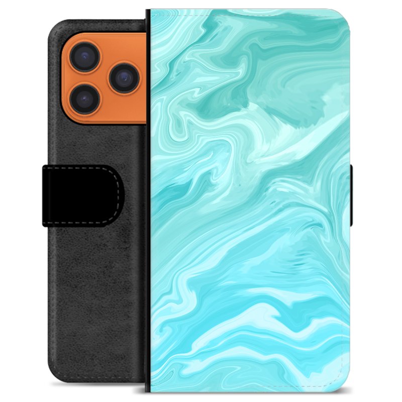 Husă Portofel Premium - iPhone 17 Pro Max - Marmură Albastră