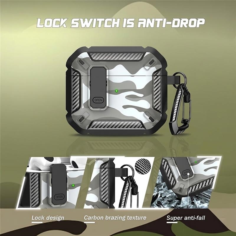 Protejează-ți carcasa de încărcare pentru Apple AirPods 4 cu această husă din TPU rezistentă la șocuri, cu un finisaj elegant în nuanță verde camuflaj. Concepută pentru protecție zilnică și transport facil, această husă oferă o acoperire completă a carcasei, contribuind la reducerea zgârieturilor, loviturilor și uzurii zilnice, menținând în același timp aspectul distinctiv al carcasei căștilor tale. Colțurile întărite asigură o protecție suplimentară împotriva impactului, făcând-o o alegere inteligentă pentru deplasările zilnice, călătorii, utilizarea în aer liber sau pur și simplu pentru a-ți păstra AirPods 4 în siguranță în genți și buzunare.