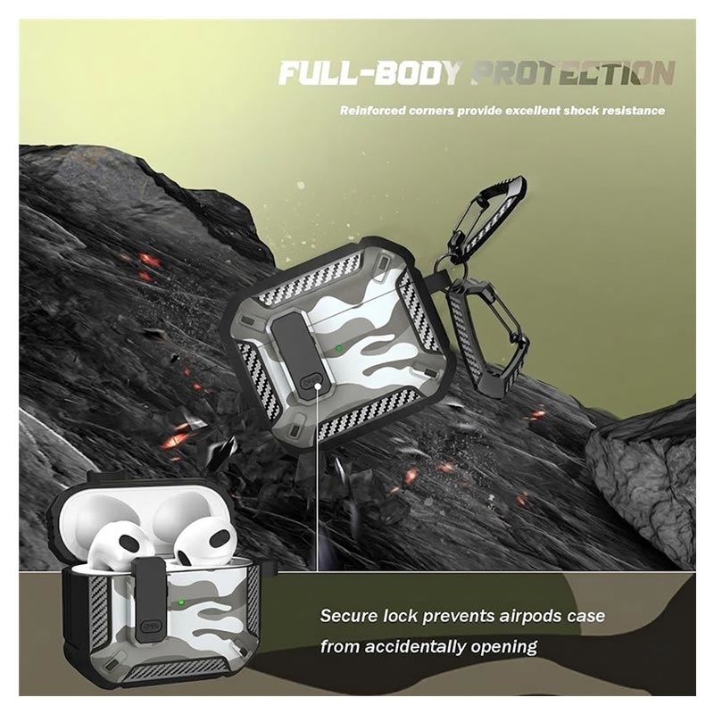 Husă din TPU rezistentă la șocuri, cu model camuflaj și carabină, pentru AirPods 4 - compatibilă cu încărcarea wireless