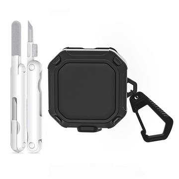 Husa este prevăzută cu un carabinier metalic practic, care vă permite să fixați căștile în siguranță la un rucsac, la o buclă de curea sau la un breloc, astfel încât să fie întotdeauna la îndemână. De asemenea, este inclus un stilou multifuncțional de curățare pentru a vă ajuta să îndepărtați praful, murdăria și resturile de pe căști și contactele de încărcare, menținând dispozitivul curat și funcționând corect. Datorită decupajelor precise și compatibilității complete cu încărcarea wireless, puteți încărca căștile fără a scoate husa.