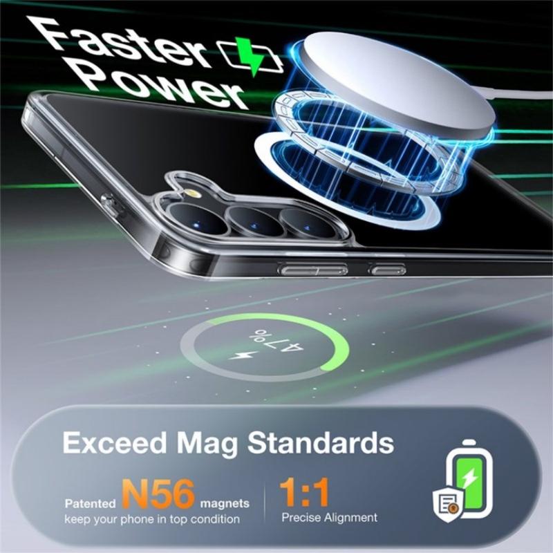 Magneții de înaltă rezistență integrați asigură o conexiune sigură și stabilă cu încărcătoarele magnetice, suporturile auto și alte accesorii compatibile. Alinierea magnetică permite încărcarea wireless fără întreruperi și atașarea fiabilă fără a îndepărta carcasa.