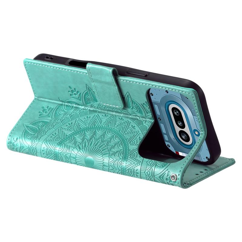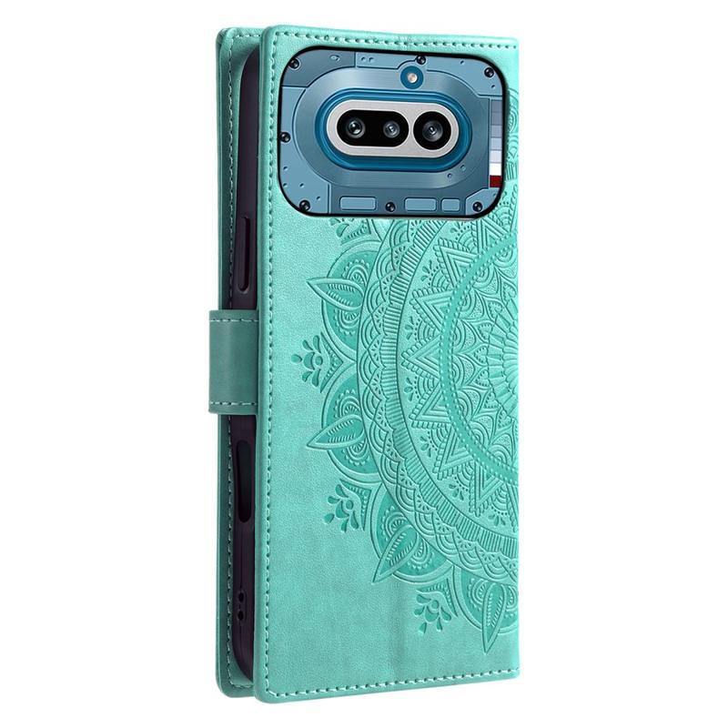 Protejează-ți telefonul cu stil cu această husă tip portofel cu suport pentru Nothing Phone (4a). Concepută cu un model decorativ mandala, această husă practică cu capac rabatabil combină protecția zilnică, spațiul pentru carduri și vizualizarea fără a ține telefonul în mână într-un singur design practic.