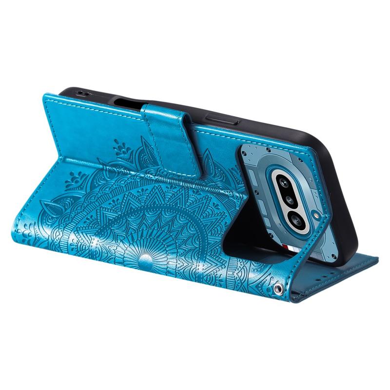 Protejează-ți telefonul cu stil cu această husă tip portofel cu suport pentru Nothing Phone (4a). Concepută cu un model decorativ mandala, această husă practică cu capac rabatabil combină protecția zilnică, spațiul pentru carduri și vizualizarea fără a ține telefonul în mână într-un singur design practic.