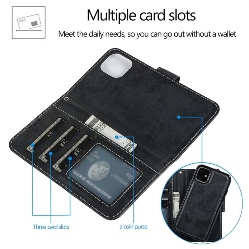 - 1 x husă tip portofel pentru iPhone 11 cu capac detașabil