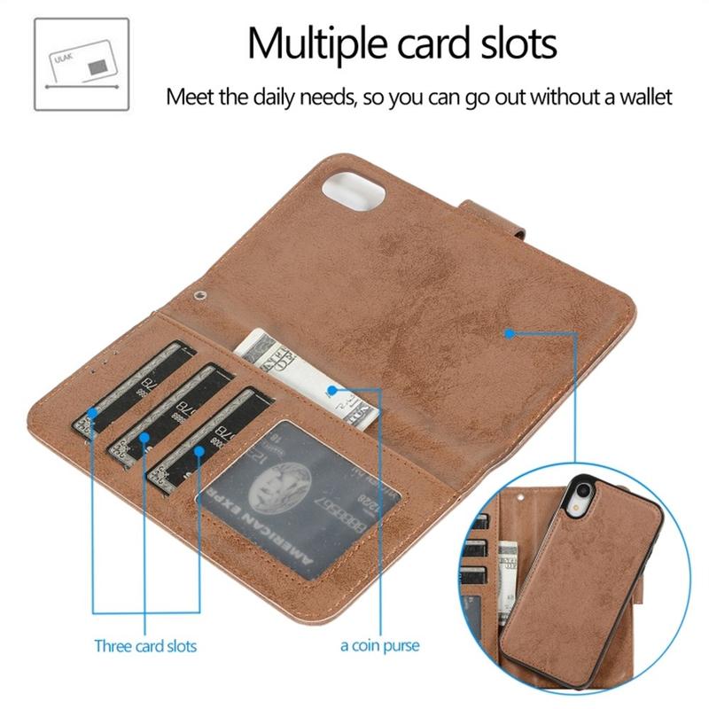Husă-portofel vintage 2-în-1 cu capac magnetic detașabil pentru iPhone XR