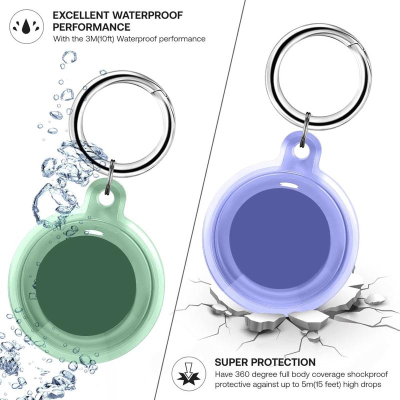 Husă transparentă din silicon, rezistentă la apă, cu breloc pentru Apple AirTag 1 și AirTag 2 - Husă ușoară, care nu îngălbenește