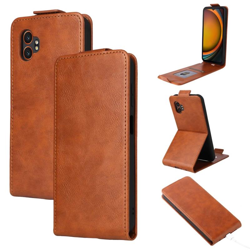 Samsung Galaxy XCover7 Pro Vertical Flip Leather Wallet Case combină stilul și caracterul practic. Confecționată din piele sintetică premium cu o carcasă interioară TPU durabilă, aceasta oferă protecție completă pentru dispozitivul dvs. menținând în același timp un aspect elegant.