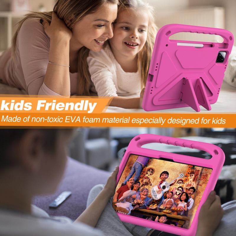 Protejați tableta Xiaomi Pad 7, Pad 7 Pro, Pad 8, Pad 8 Pro, Poco Pad X1 cu această interesantă husă antișoc pentru copii. Husa antișoc cu mâner este fabricată din material EVA ecologic și netoxic, deci este sigură pentru copii. Această husă oferă protecție adecvată tabletei și acces ușor la toate funcțiile, și permite vizualizarea handsfree datorită suportului încorporat.
