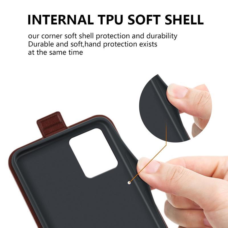 Husa cu rabat vertical este proiectată pentru a acorda prioritate siguranței și durabilității Motorola Moto G54. Construcția sa robustă garantează o apărare de lungă durată, în timp ce un slot pentru card încorporat vă permite să purtați comod cardul preferat lângă Motorola Moto G54, oriunde ați merge.