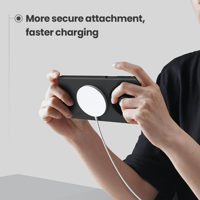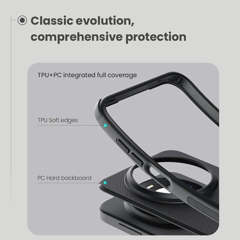 Carcasa hibridă Nillkin Frosted Shield Pro Magnetic oferă o senzație de atingere confortabilă și o protecție puternică împotriva uzurii zilnice. Îți păstrează Huawei Mate 80, Mate 80 Pro bine protejat datorită combinației dintre PC ecologic și TPU flexibil. Carcasa hibridă Nillkin Frosted Shield Pro Magnetic conține și un inel magnetic încorporat compatibil cu încărcarea fără fir, ceea ce înseamnă că poți încărca Huawei Mate 80, Mate 80 Pro de acum înainte cu husa pusă.