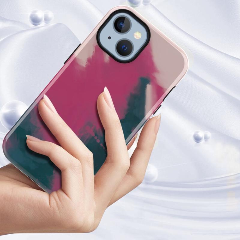 GW03 Husă din spate moale TPU + PC dur pentru iPhone 14 Plus, Husă pentru telefon mobil IMD cu model elegant anti-zgârieturi