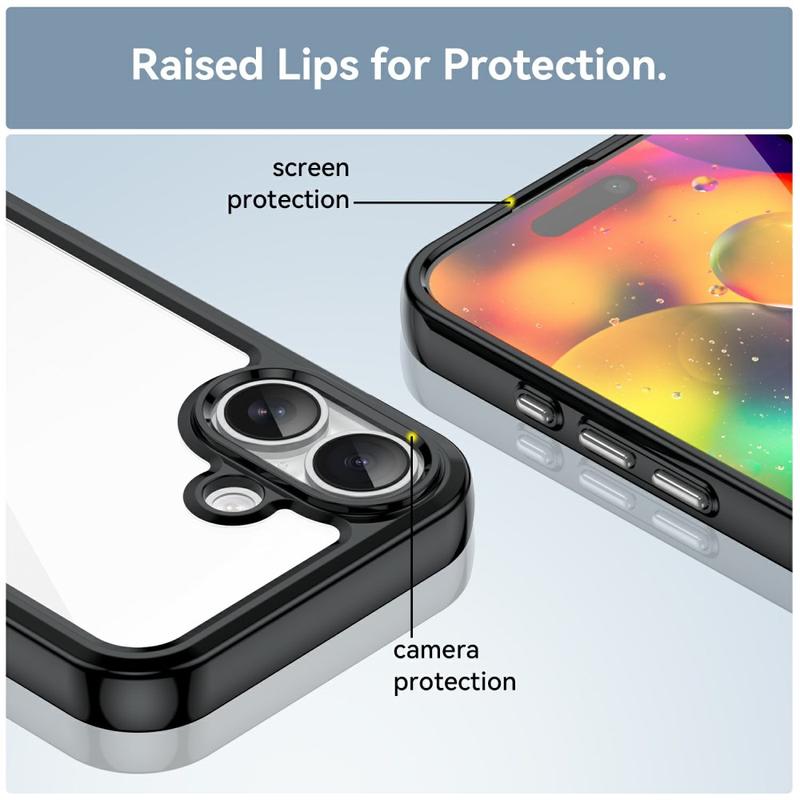 - Această husă hibrid pentru iPhone 17 este fabricată din acril și TPU
