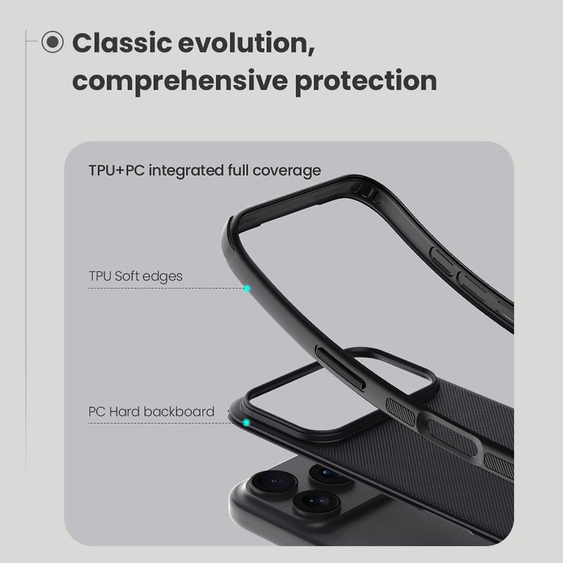 Nillkin a proiectat noua versiune Pro, mai puternică, a husei Super Frosted Shield pentru prețiosul dvs. iPhone 17 Pro. Aceasta asigură protecție maximă împotriva căderilor, datorită designului din două straturi - spate din PC cu cadru din TPU.