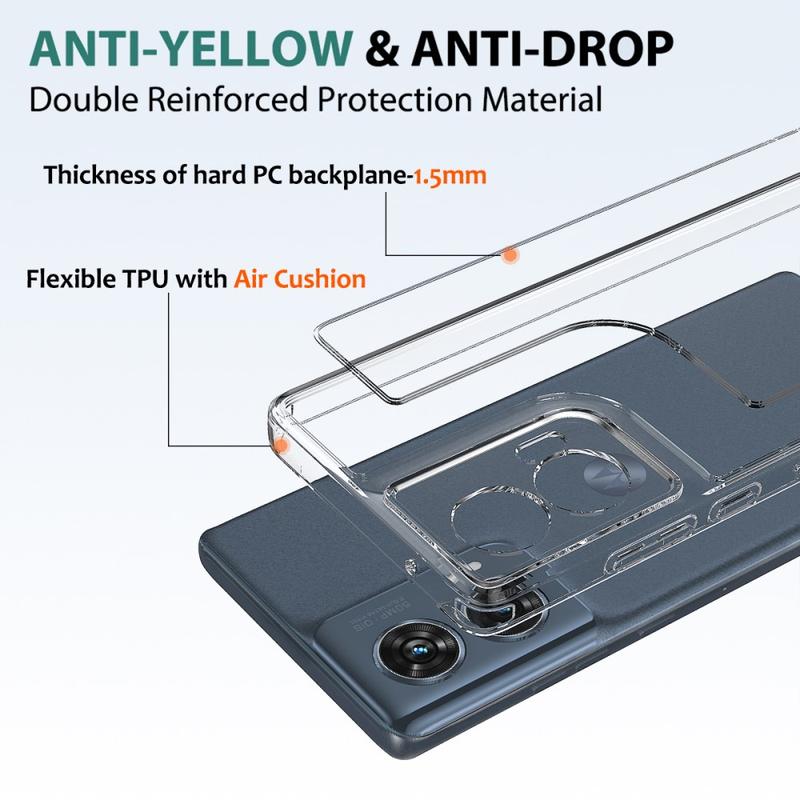 Această husă este creată dintr-o combinație de acril și TPU, pentru a păstra telefonul în stare impecabilă. În același timp, colțurile consolidate, care absorb șocurile, împiedică deteriorarea, iar designul transparent scoate în evidență minunatul design al telefonului Motorola Edge 50 Fusion, Motorola G96.