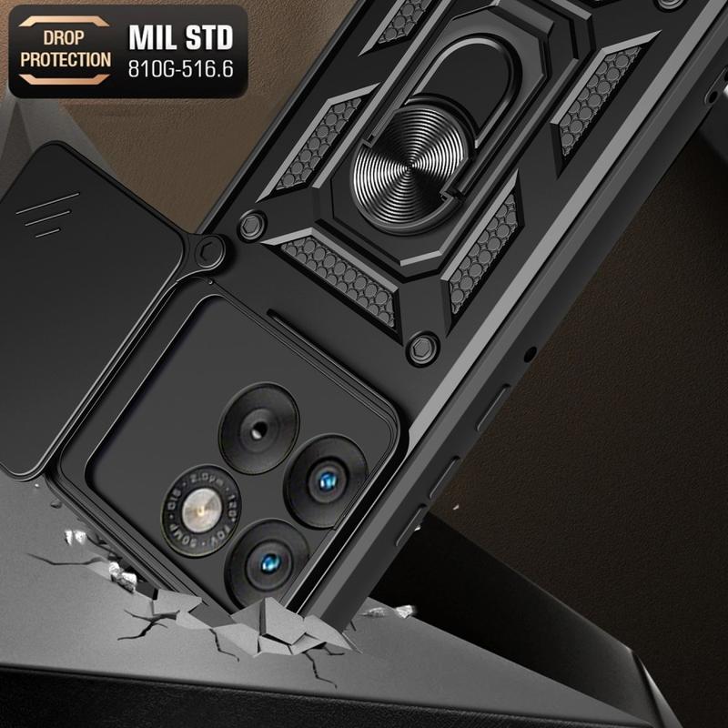 Husă Hibridă Motorola Edge 70 cu Inel Rotativ cu Ecran pentru Cameră - Negru