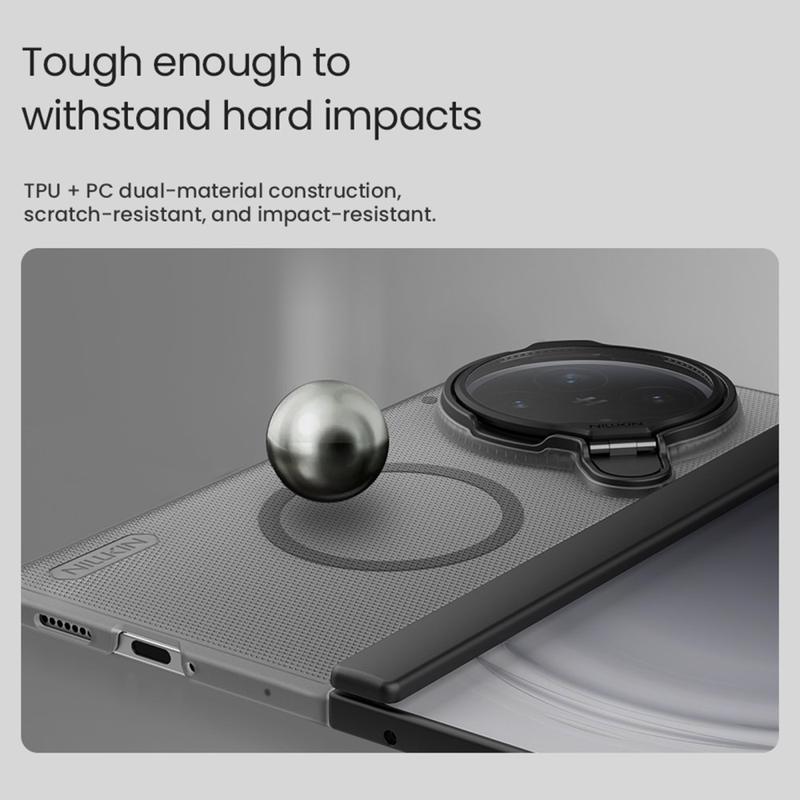Protejați-vă Oppo Find N6 în stil cu Nillkin Super Frosted Shield Prop Case. Concepută pentru durabilitate, această husă subțire, dar robustă, apără telefonul împotriva uzurii zilnice, adăugând în același timp funcționalități utile. Cu un capac convenabil pentru obiectivul camerei și un kickstand integrat, aceasta îmbină perfect protecția robustă cu confortul modern.