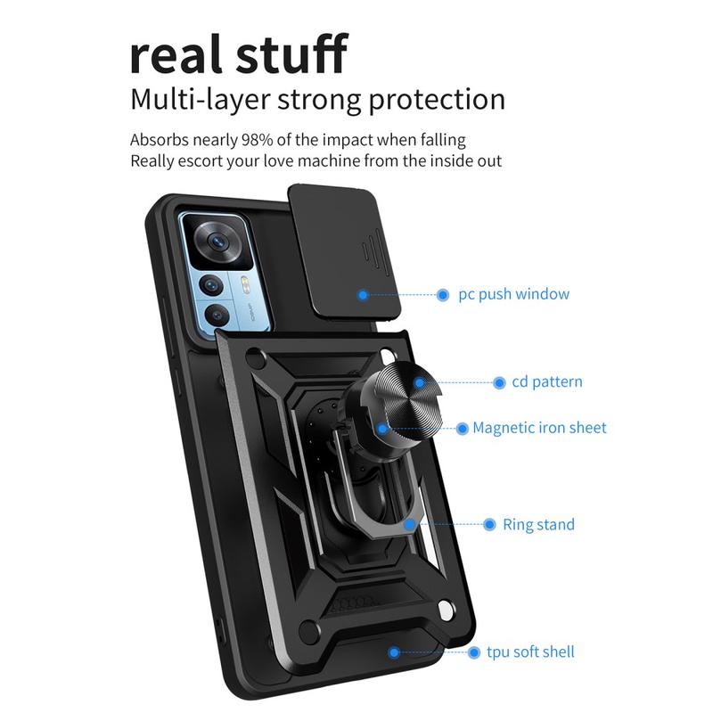 Husă Hibridă cu Inel Rotativ cu Ecran pentru Cameră pentru Xiaomi 12T, 12T Pro, Redmi K50 Ultra