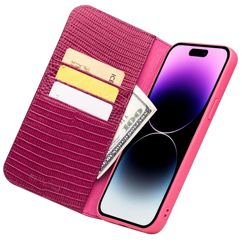 Wrap your iPhone 14 Pro into this stylish Qialino wallet leather case, and it will look more elegant than ever. The integrated cover is made of TPU with all the necessary cutouts for ports, while the wallet is made of genuine leather with a crocodile skin texture. This iPhone 14 Pro wallet case offers good protection and storage for up to three cards and some cash.