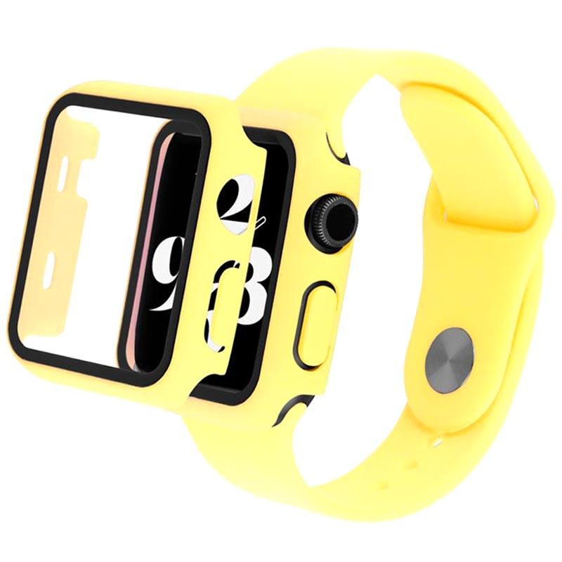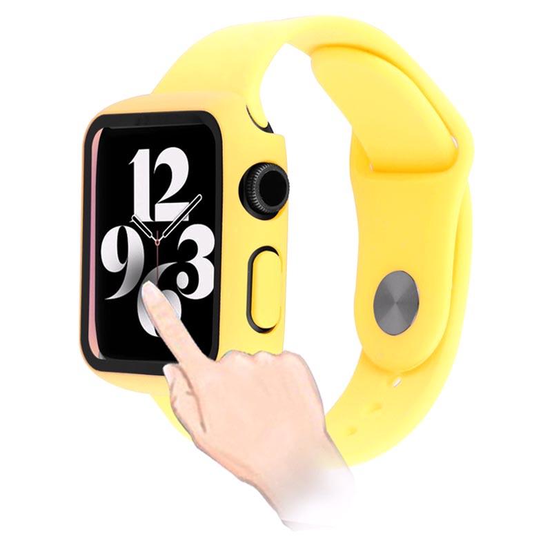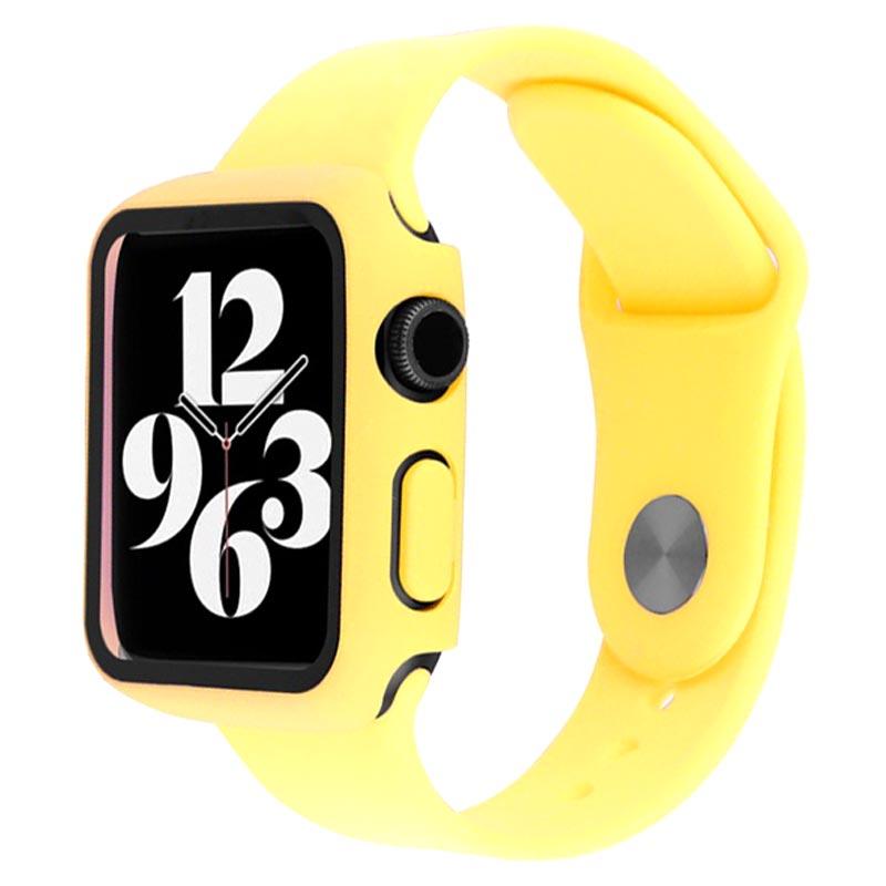 Husă Plastic cu Geam Protecție Ecran Sticlă Temperată pentru Apple Watch Series SE (2022), Apple Watch Series SE, Apple Watch Series 6, Apple Watch Series 5, Apple Watch Series 4