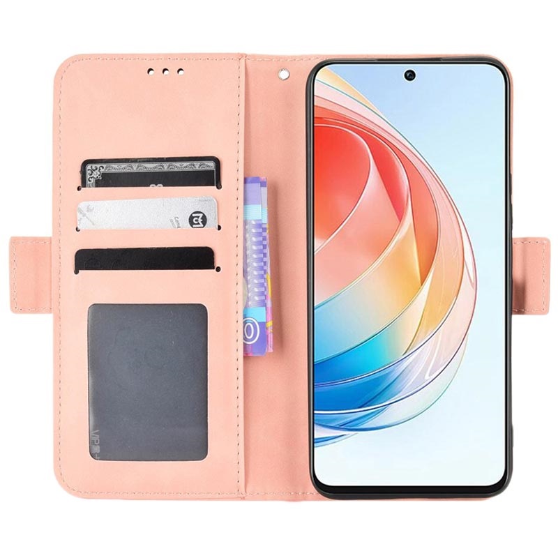 Cu sloturile sale detașabile pentru carduri, această husă tip portofel din seria Cardholder vă poate păstra cardurile de credit sau orice alt document necesar în siguranță și la îndemână. Și nu numai că veți scăpa în sfârșit de necesitatea unui portofel clasic, dar veți avea și ocazia de a viziona filme, emisiuni TV, materiale media, și de a naviga pe internet datorită funcției de stand cu care este prevăzută husa. Husa portofel din seria Cardholder vă va face fericit odată ce veți introduce telefonul Honor X40i în ea.