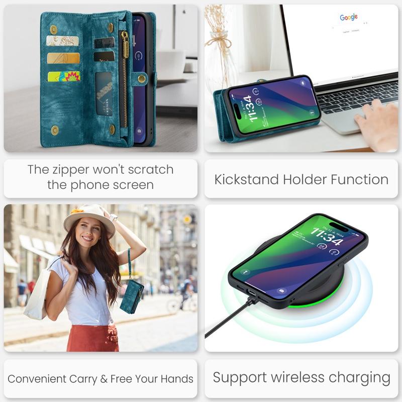 Acest accesoriu este plin de caracteristici care vă permit să transportați toate elementele esențiale și iPhone 16 împreună. Husa din TPU detașabilă este acoperită cu piele divizată, ceea ce conferă dispozitivului dvs. un aspect de înaltă calitate și protejându-l împotriva daunelor.