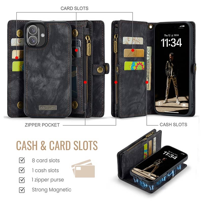 Husă Portofel Caseme 008 2-în-1 Multifunctional pentru iPhone 16 Plus