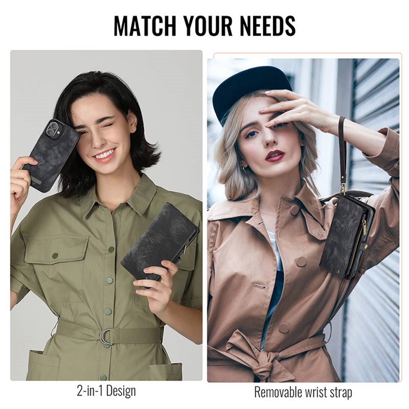 Faceți-vă ziua super eficientă cu husa portofel Caseme 008 2-în-1 pentru iPhone 16 Plus.