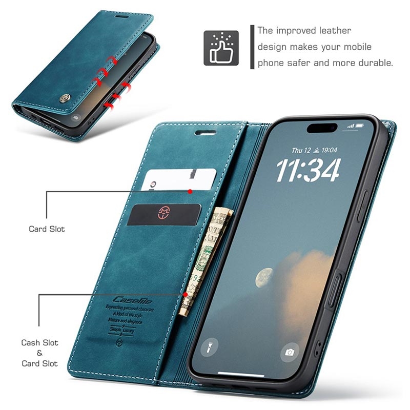 - Husă tip portofel din seria Caseme 013 pentru prețiosul dvs. iPhone 16 Plus
