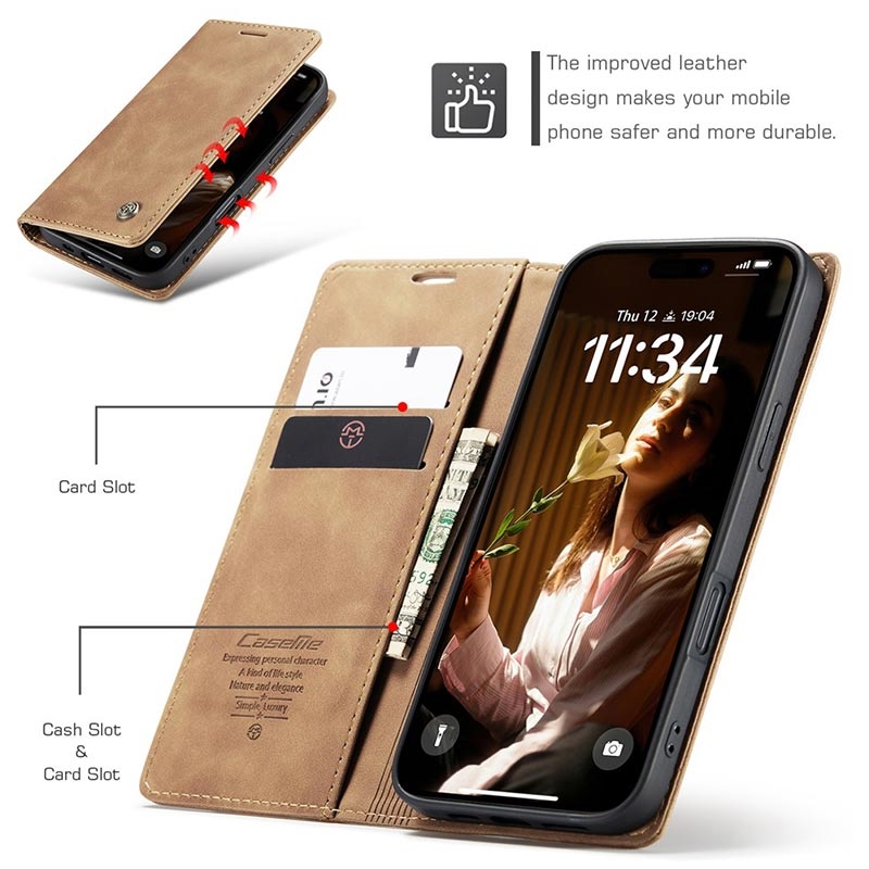 - Husă tip portofel din seria Caseme 013 pentru prețiosul dvs. iPhone 16 Plus