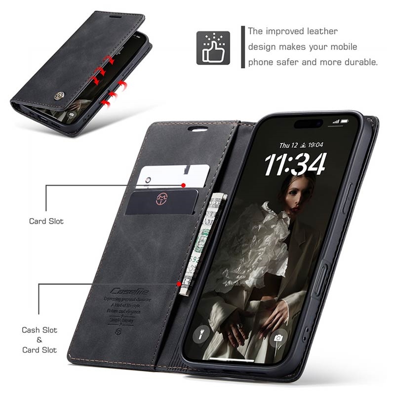 - Husă tip portofel din seria Caseme 013 pentru prețiosul dvs. iPhone 16 Plus